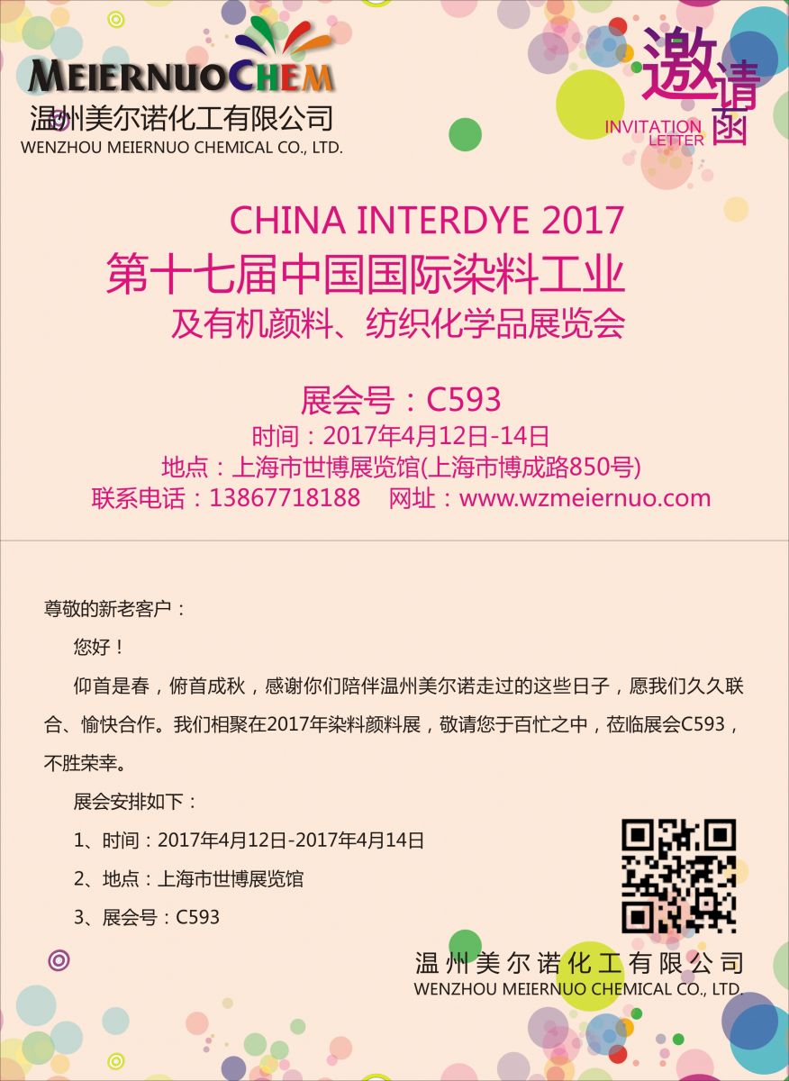 2017年第十七屆中國國際染料工業(yè) 及有機(jī)顏料、紡織化學(xué)品展覽會邀請函